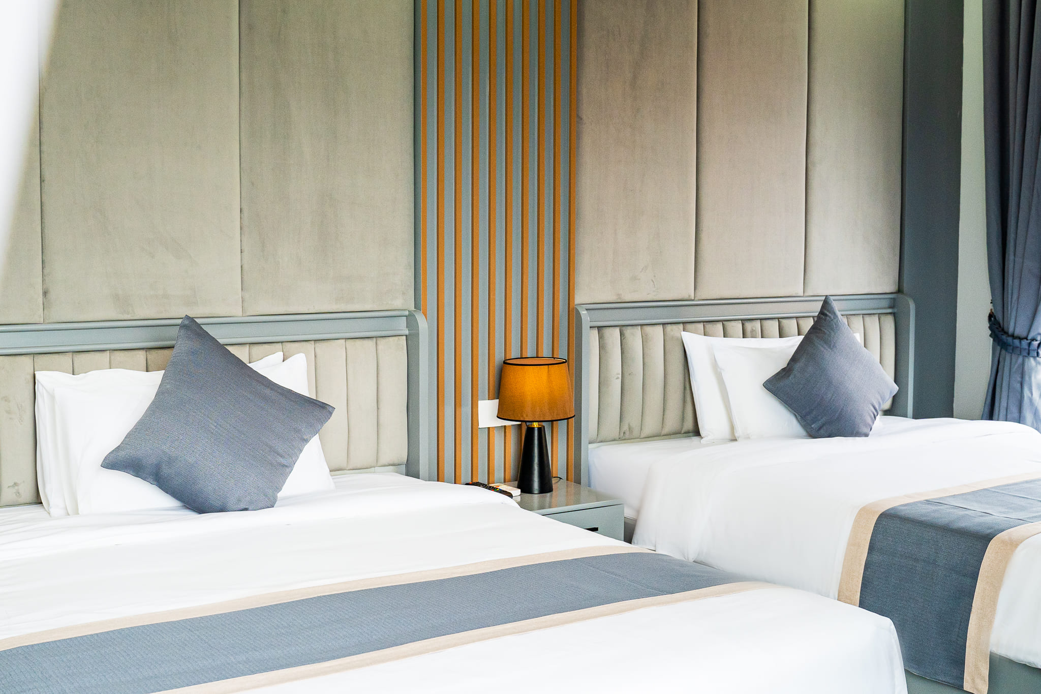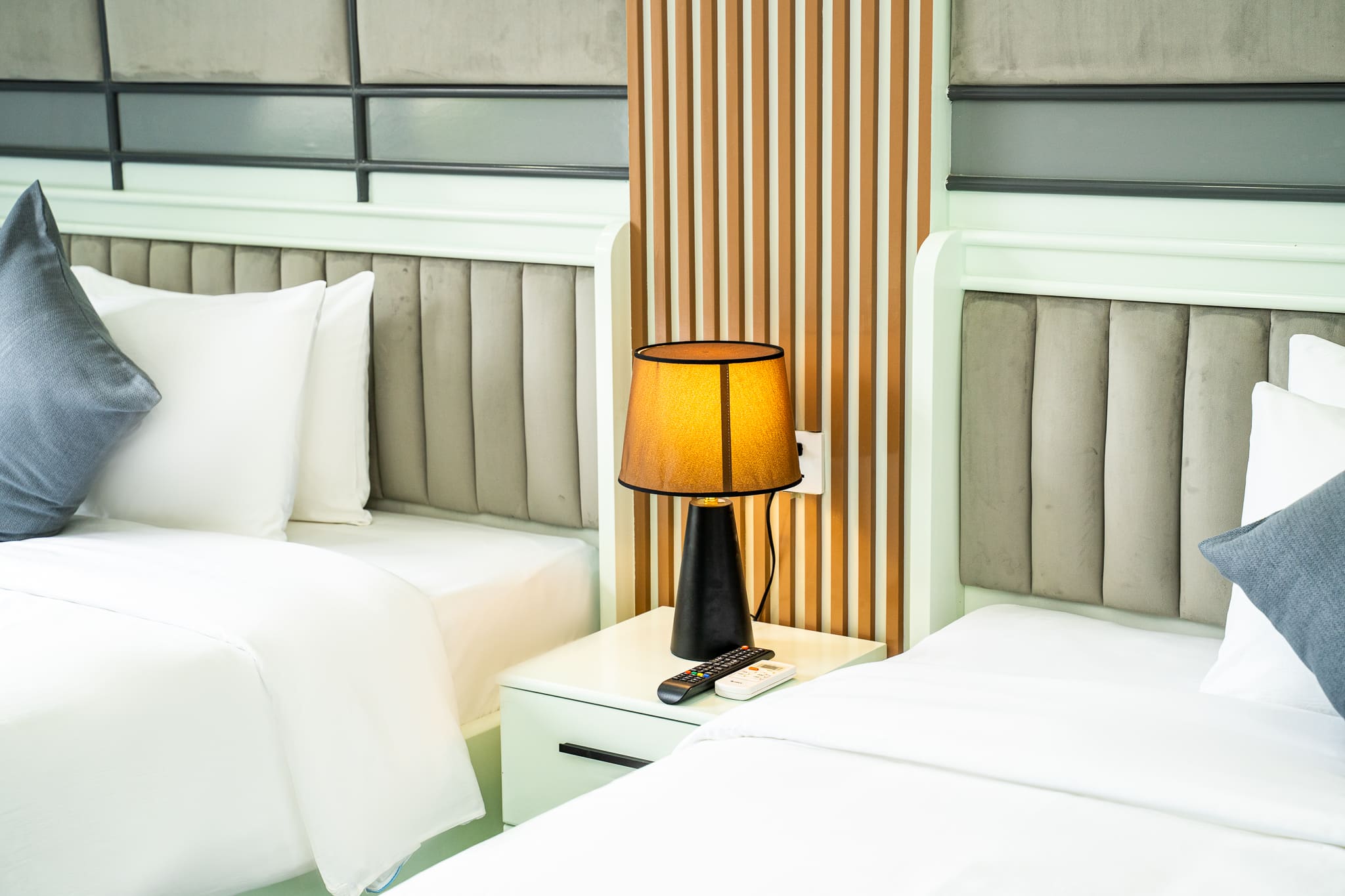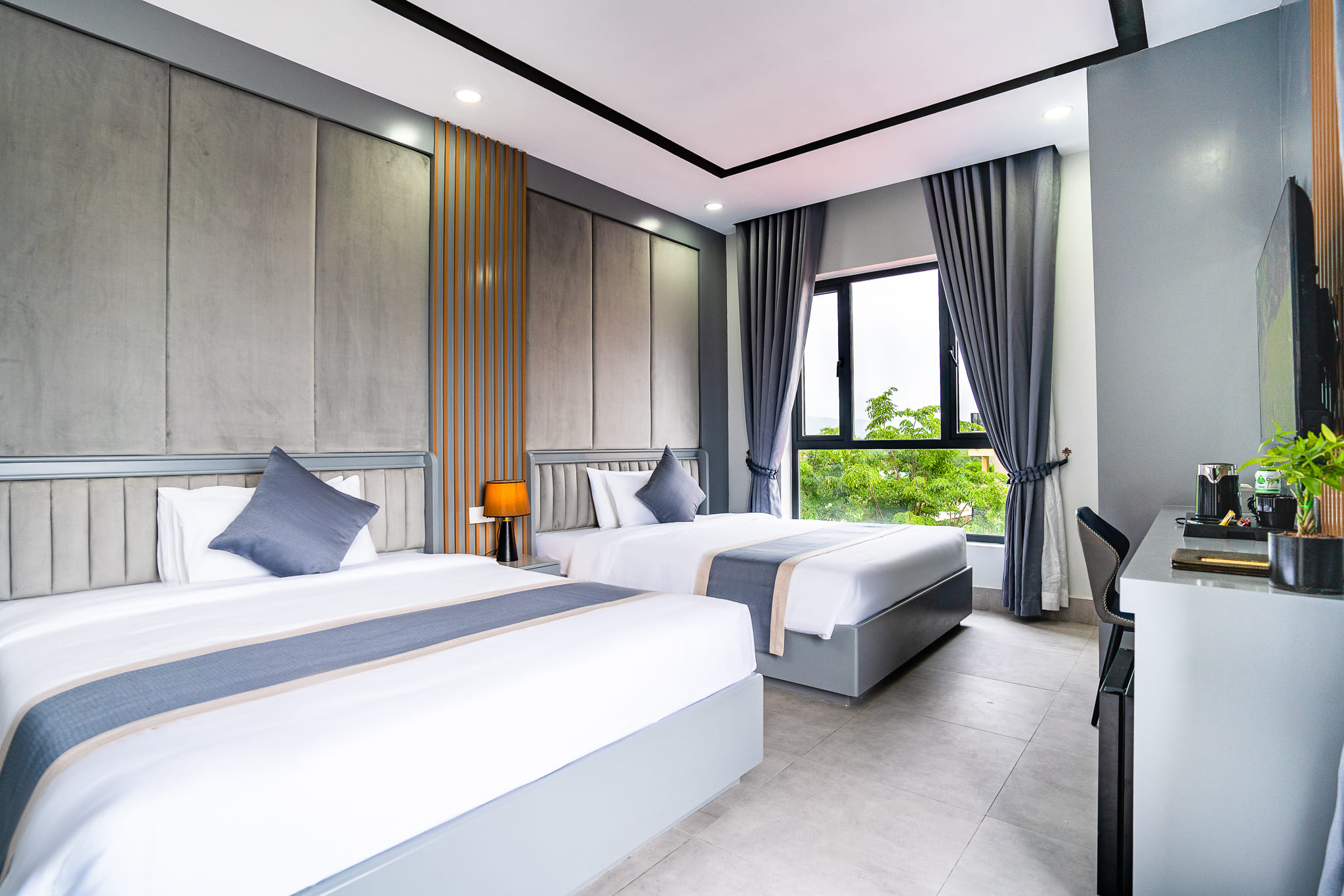 Our room size 30square matter and bed size 1.60metter x 2metter, offers elegant comfort and modernity, beautiful decoration Khmer-Asian style, and European quality bed are highlights. Bathroom feature a large rain shower with cool and hot water, complimentary hotel-brand toiletries, and white-clean all amenities each room, overlooks a private balcony with city and mountain view.
